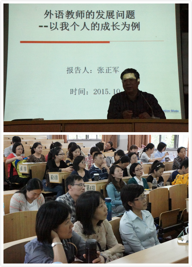 302教室为学院教师作了一场题为“外语教师的发展问题 ——以我个人的成长为例”的讲座。