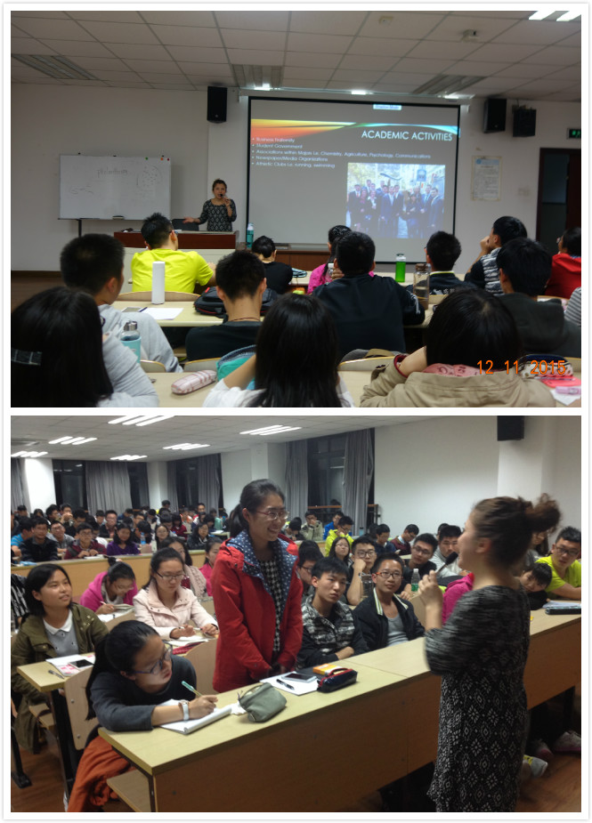 11月12日晚,应外国语学院入驻奉贤学术英语创新团队的邀请,我校美籍外教Megan A. Fuehrer作了题为“美国大学文化”的专题讲座。