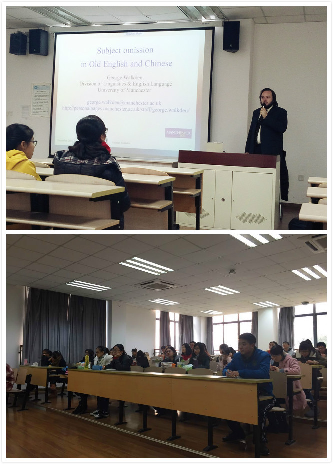 12月14日,英国曼彻斯特大学语言学教授(以下简称曼大)George Walkden 应外国语学院邀请,在奉贤校区进行国际交流2+2交流项目的推介并作讲座。