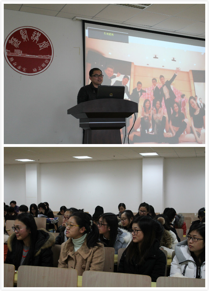 12月17日晚,校就业指导中心资深就业指导老师裴文波应邀在奉贤校区大学生活动中心215教室,为外国语学院2013级本科生作了一场题为“2015年就业形势分析及生涯规划指导”的讲座。