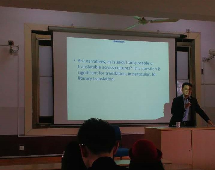 4月8日下午,北京第二外国语学院英语学院院长武光军教授应我校外国语学院的邀请,在徐汇校区六教301室作了题为“中国当代小说英译中的叙事调适:以葛浩文英译《河岸》为例”的学术讲座。外国语学院全体研究生及部分教师聆听了讲座。