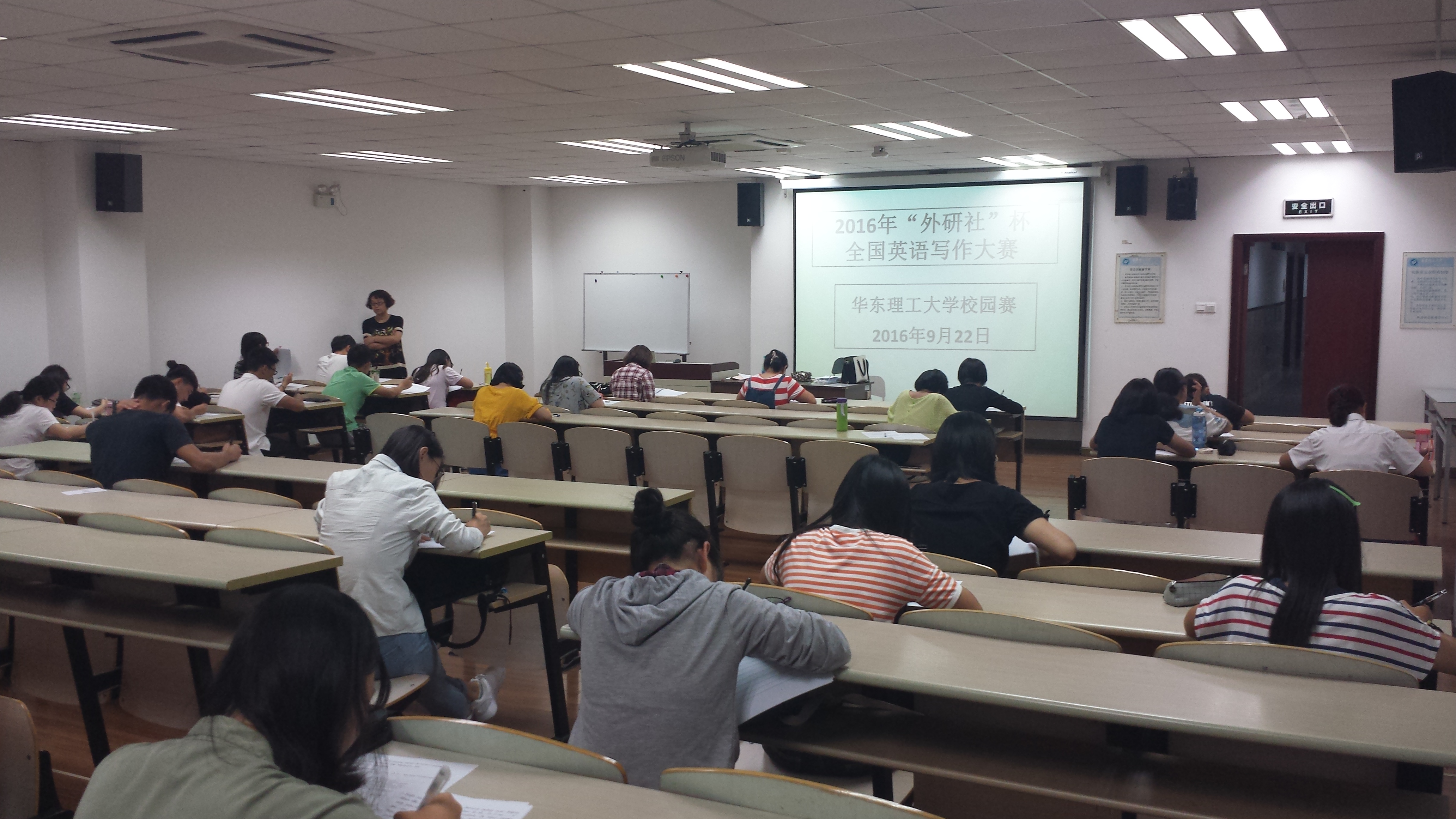 近日,来自外国语学院、材料科学与工程学院、资源与环境工程学院、商学院、生物工程学院、信息科学与工程学院等,大一至研一的100多名学生报名参加了2016年“外研社杯”全国英语写作大赛华东理工大学校园赛,并由此正式拉开了本学期英语类学科竞赛的序幕。