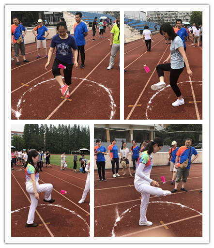 开幕式之后,外国语学院的教工代表队参加了运动会的单项比赛和徐汇校区的趣味运动会的集体项目比赛。在单项比赛中,史晓慧老师勇夺女子800米第二名。在趣味运动会上,外语学院的优势项目“平板支撑”的3位老师,拼意志,拼实力,获得第二名。长绳队争分夺秒奋力拼搏,以2分钟170跳的好成绩夺得第三名。此外,“篮球投篮”获得第五名,“足球射门”获得第六名,取得了突破性的成绩。