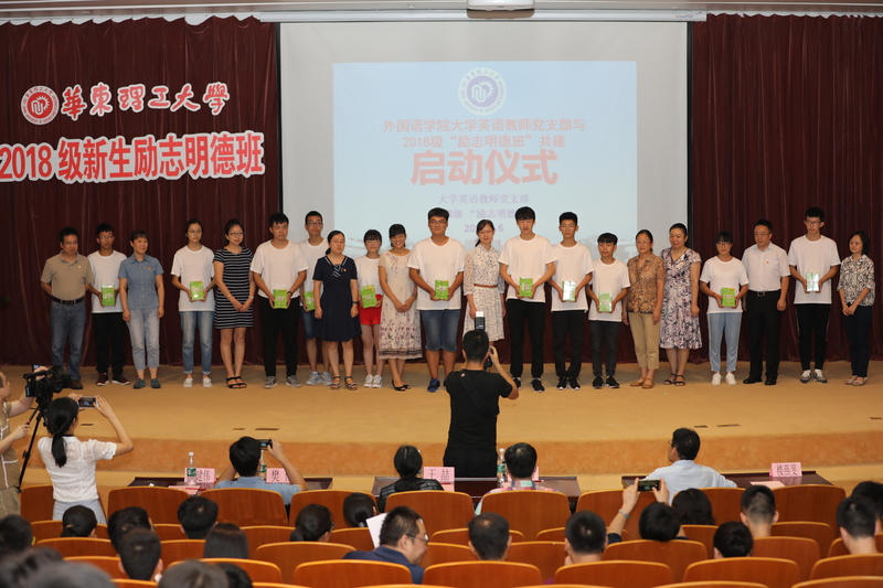 9月6日下午,外国语学院大学英语教师党支部与2018级新生“励志明德班”共建活动启动仪式在奉贤校区敬贤堂举行。学工部部长、校团委书记倪炜,学工部副部长胡兵,外语学院党总支书记王喆、副书记樊俊、副院长吴建伟、大学英语教师党支部16名教师党员、教师志愿者和147名“励志明德班”学生一起参加了启动仪式。活动由大学英语教师党支部组织委员楼燕斐主持。