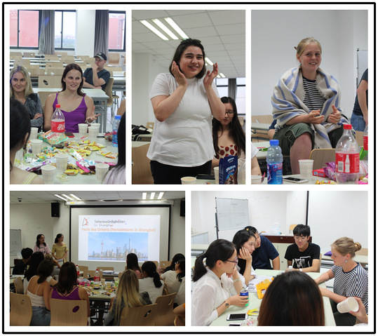 我校学生向斯图加特大学交流生们介绍了上海的著名景点和特色小吃,双方在轻松愉快的氛围中自由交谈。我校学生还带领斯图加特大学交流生们去一食堂体验中餐。双方学生都在交流过程中增进了对彼此的了解,建立了友谊。
