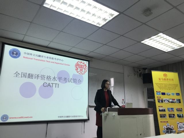 10月26日下午,上海策马翻译有限公司独家译训师唐雪娇应邀在徐汇校区为外国语学院翻译专业硕士研究生们作关于“CATTI”(翻译专业资格(水平)考试)的精彩讲座。