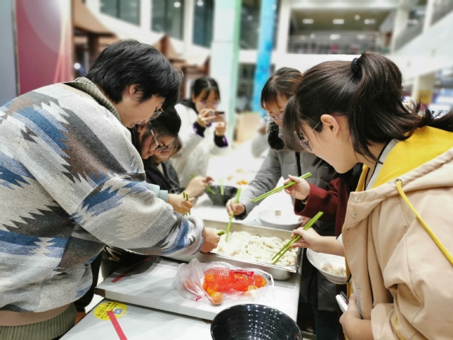为了进一步弘扬民俗文化,丰富同学们的课余生活,增强班级凝聚力,德语192联合日语191班于12月22日晚在华东理工大学奉贤校区第一食堂举办了一场主题为“冬至食堂,庚子情长——冬至饺子宴”的团建活动。19级辅导员侯月参加了活动。