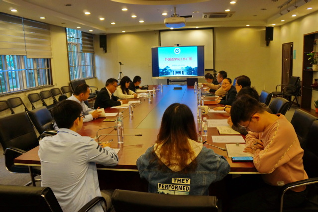10月21日,校党委副书记、纪委书记沈志超到我院进行调研指导。外国语学院党委书记王喆,党委副书记、院长赵宏,纪检委员、副院长吴建伟以及办公室主任、组织员、党支部书记和学生代表等参加了座谈。会议由王喆主持。监察处副处长周容、理学院纪检委员施劲松和纪委办公室工作人员马小雷陪同调研。