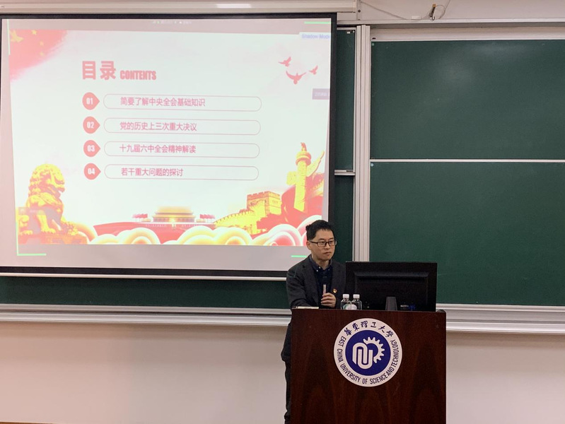 12月17日,外国语学院党委通过线上线下同步进行的形式组织全体教师和学生党员开展政治理论学习,集中学习党的十九届六中全会精神。华东理工大学学习贯彻党的十九届六中全会精神宣讲团成员、人文社会科学处副处长唐有财教授应邀作了题为“党的十九届六中全会精神解读”的专题讲座。讲座由外国语学院党委书记王喆主持。