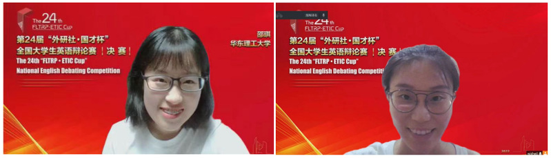 6月10日至13日,第二十四届“外研社·国才杯”全国大学生英语辩论赛总决赛在线上举行。我校财务182班严佳仪、社会201班邵琪两位同学在外国语学院英语系副主任高攀的指导下,一路过关斩将,获得了全国总决赛一等奖的好成绩。