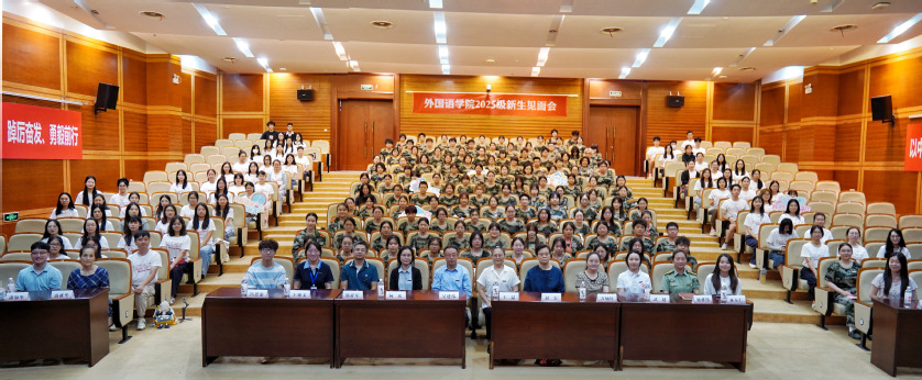 9月11日下午,外国语学院2025级新生见面会在奉贤校区敬贤堂举行。学院党委书记王喆、院长赵宏、副院长吴建伟、系主任、研究生导师代表、班导师代表、各年级辅导员、教务员以及2025级189名本研新生参加了见面会。会议由学院党委副书记杨雅伟主持。
